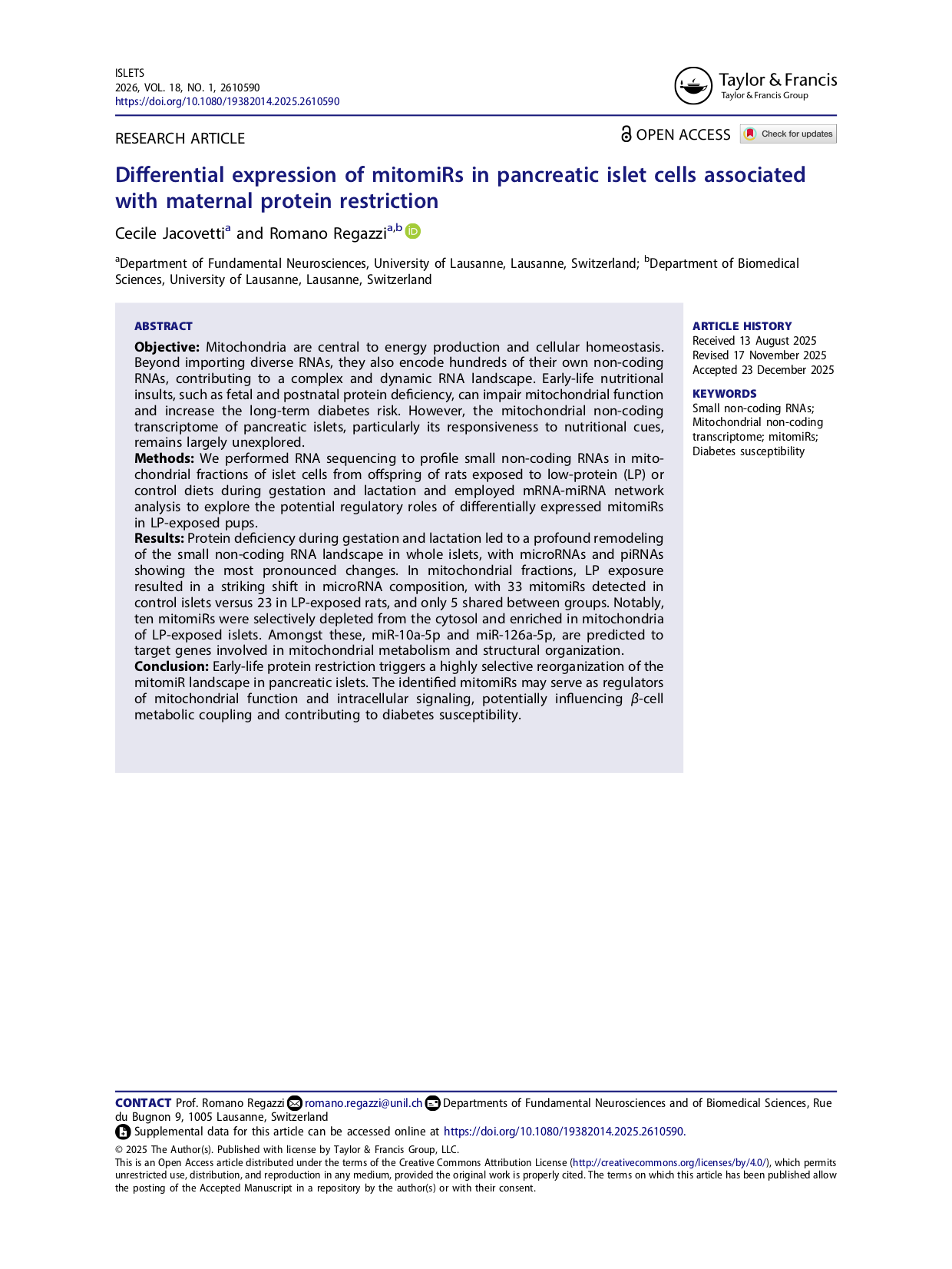 ‘Differential expression of mitomiRs in pancreatic islet cells associated with maternal protein restriction’